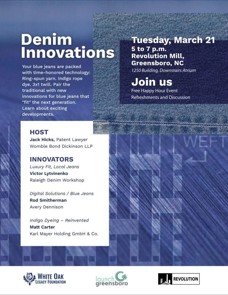 At this event, White Oak Legacy Foundation presented a discussion on denim innovations among Denim 101 students and community members. Launch Greensboro, an entrepreneurial incubator, co-sponsored the event with WOLF.